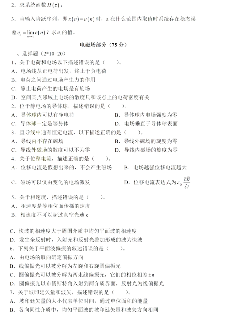 101 思想政治理论 | 201 英语(一) | 301 数学(一) | 957 电子信息科学专业基础 | 957 电子信息科学专业基础考试内容:含信号与系统和电磁场理论 | |