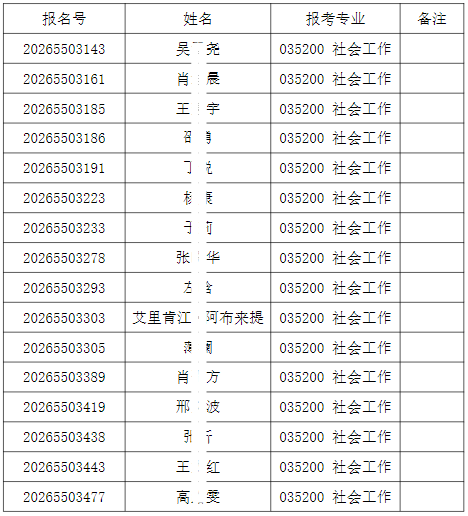 清华大学社会治理领军人才项目2026年招收公开招考博士入围综合考核的名单已确定,现公布如下: