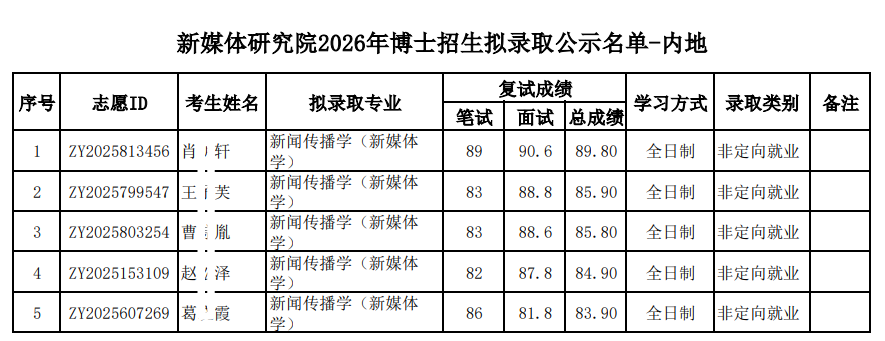 以上是关于【2026年北京大学新媒体研究院博士招生拟录取公示名单-内地】的内容,希望能帮助准备考研清北的同学们节约时间,提高上岸的成功率。