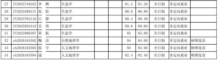 经北京大学研究生院审核批准,现公布城市与环境学院2026年博士研究生招生拟录取名单。