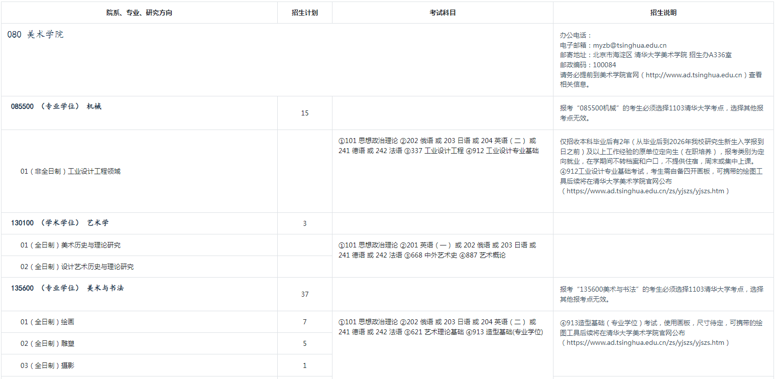以上是关于【2026年清华大学美术学院考研招生专业目录】的内容,希望能帮助准备考研清北的同学们节约时间,提高上岸的成功率。