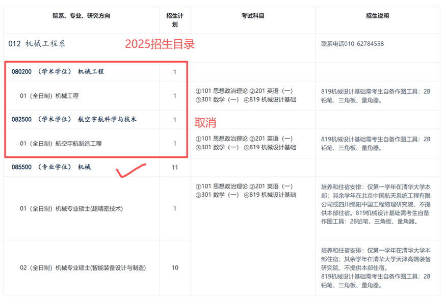 学硕取消?2026清华大学机械工程系招生目录变换与解读