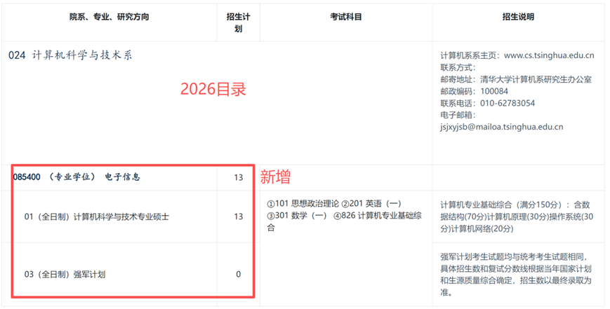 专注清北硕博辅导十余年,盛世清北第一时间为考生带来清华各院系招生政策简要解读。2026年,清华大学计算机科学与技术系迎来历史性转变:计算机科学与技术学术学位正式退出招生序列,同时新增电子信息专业学位,开启计算机人才培养的新篇章。