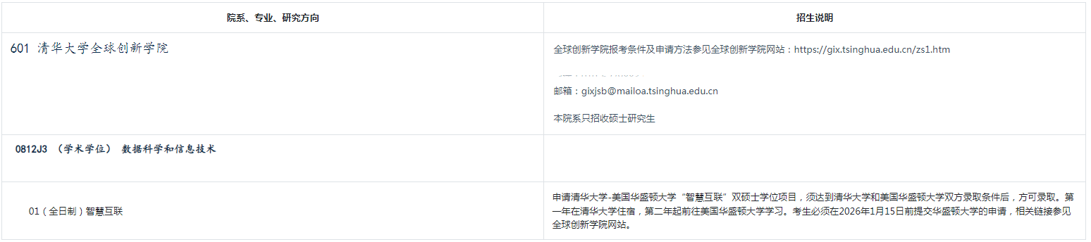 以上是关于【2026年清华大学全球创新学院招收港澳台地区硕士研究生专业目录】的内容,希望能帮助准备考研清北的同学们节约时间,提高上岸的成功率。