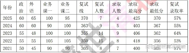 (3)录取人数2021年7人,2022年为8年,2023年9人,2024年为5人,2025年为4人,录取人数有波动,同学们要抓住这个机会。