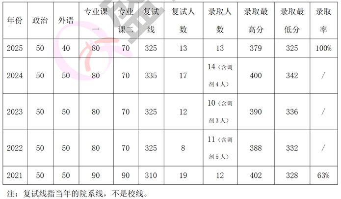 复试分数线呈现动态平衡:基本分数线(院系线)在310分至335分区间内波动,单科要求(政治/外语≥50分,业务课≥80/70分)保持稳定。值得注意的是,2025年分数线回调至325分,反映了年度报考热度与生源质量的动态变化。