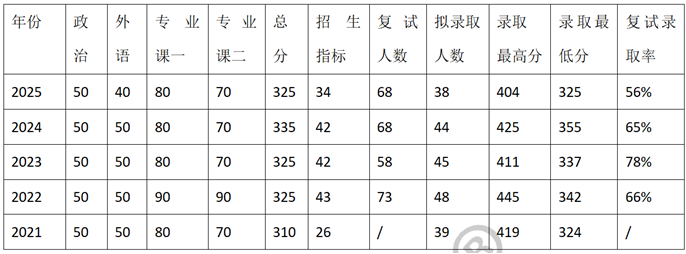 复试分数线与实际录取门槛存在差距。近年来,该专业的复试基本分数线(校线/院线)在310分至335分区间波动。然而,这仅是获得复试资格的“最低门槛”。从最终录取数据看,实际录取最低分通常远高于此线,近年维持在337分至355分之间。这意味着,初试成绩需至少高出复试线10-20分,方能在综合竞争中占据相对有利的位置。