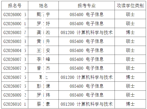 清华大学计算机科学与技术系2026年招收港澳台地区研究生入围综合考核的名单已确定,现公布如下: