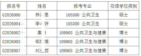 清华大学万科公共卫生与健康学院2026年招收港澳台地区研究生入围综合考核的名单已确定,现公布如下: