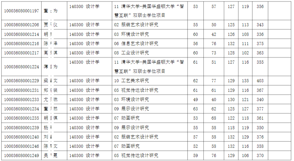 清华大学美术学院2026年全国硕士研究生招生考试入围复试的名单已确定,现公布如下: