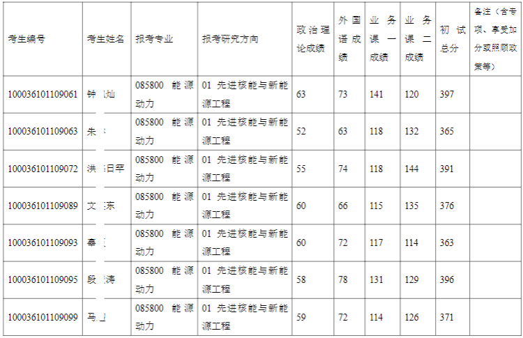 清华大学核能与新能源技术研究院2026年全国硕士研究生招生考试入围复试的名单已确定,现公布如下: