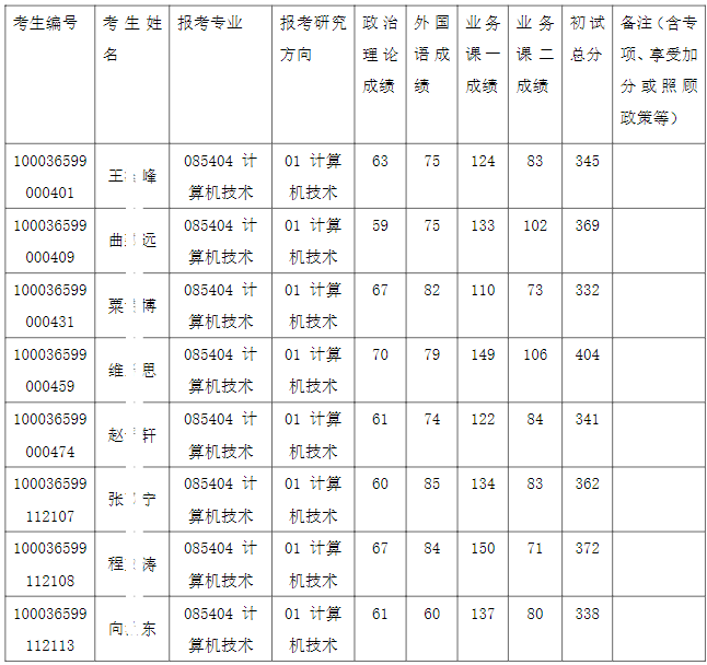 清华大学深圳国际研究生院2026年全国硕士研究生招生考试计算机技术项目入围复试的名单已确定,现公布如下: