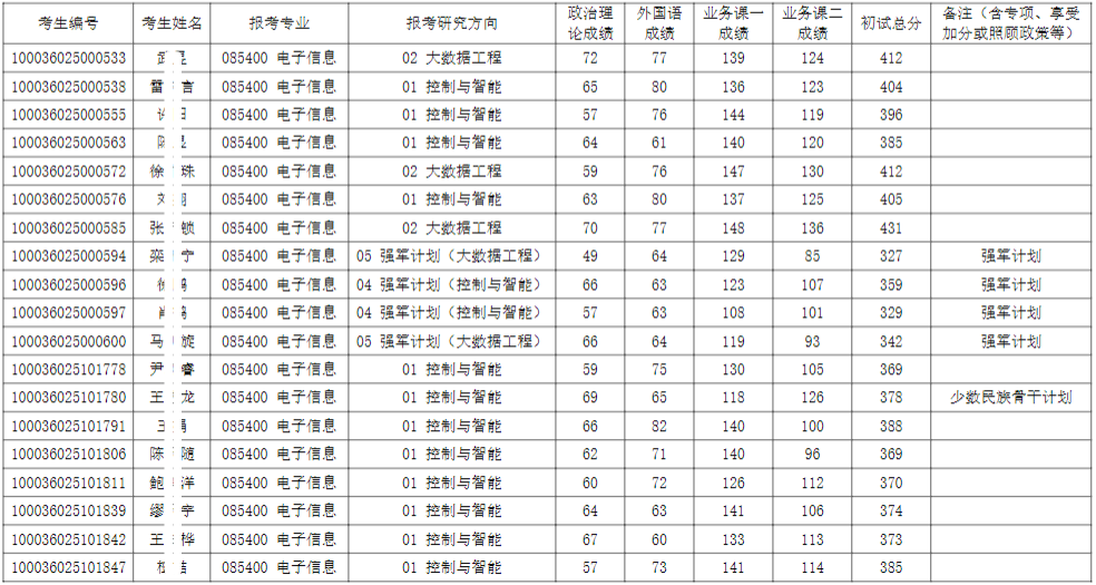 清华大学自动化系2026年全国硕士研究生招生考试入围复试的名单已确定,现公布如下: