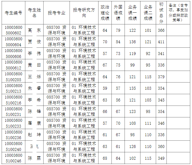 清华大学环境学院2026年全国硕士研究生招生考试资源与环境专业入围复试的名单已确定,现公布如下