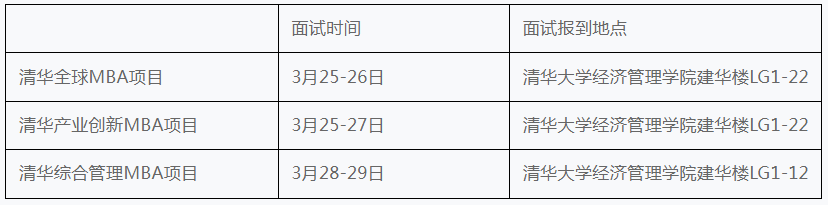 面试预约结果:3月23日15:00在清华MBA申请服务系统状态栏页面发布。
