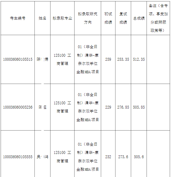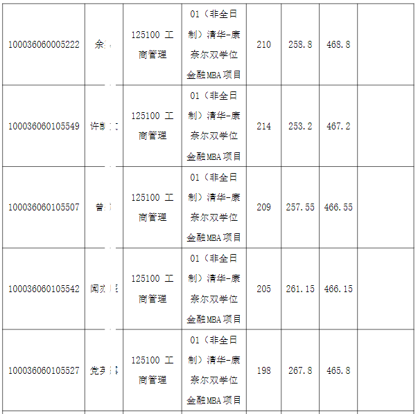 以上是关于【2026年清华大学五道口金融学院硕士研究生清华-康奈尔双学位金融MBA项目拟录取名单公示】的内容,希望能帮助准备考研清北的同学们节约时间,提高上岸的成功率。