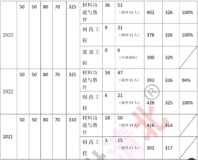 制药工程方向录取人数有所波动,从2021年的15人上升到2022-2023年的21人,2024年降至18人,2025年缩减至7人。录取分数区间为317-428分,其中2022年出现428分的最高录取分。