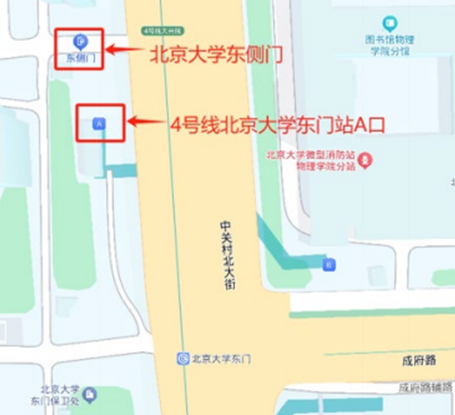 学院将统一为复试考生申请入校权限。入校时间仅限 3 月 25 日-27 日。请携带有效身份证件(大陆考生为身份证,留学生为护照)步行入校,入校校门仅限北京大学东侧门(紧邻地铁北京大学东门站 A 出口),东侧门示意图如下: