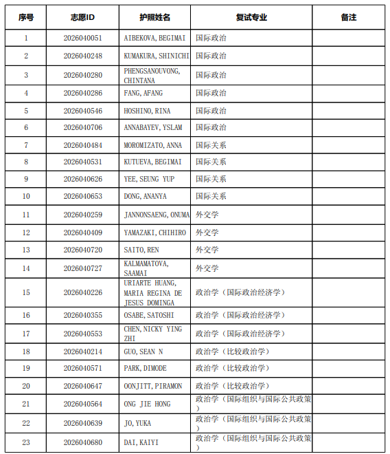 以上是关于【2026年北京大学国际关系学院留学生申请攻读硕士学位复试名单】的内容,希望能帮助准备考研清北的同学们节约时间,提高上岸的成功率。