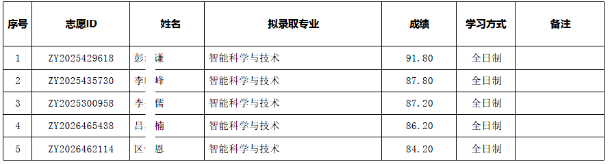 2026年北京大学智能学院港澳台学生攻读硕士学位拟录取名单公示。