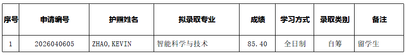 2026年北京大学智能学院留学生攻读硕士学位拟录取名单公示。