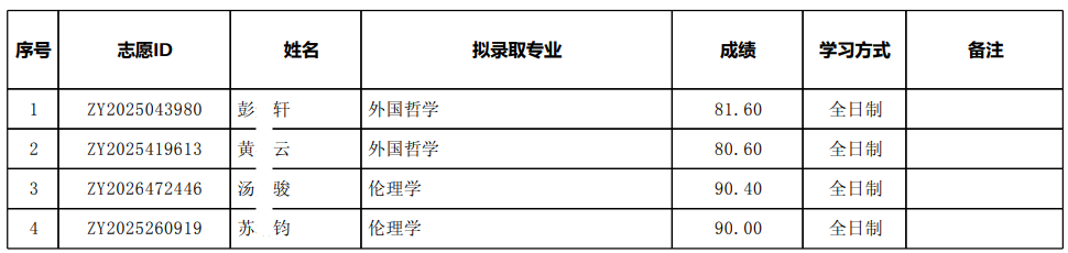 以上是关于【2026年北京大学哲学系硕士研究生招生拟录取公示名单】的内容,希望能帮助准备考研清北的同学们节约时间,提高上岸的成功率。