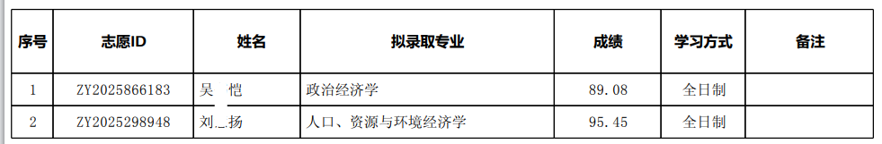 经北京大学研究生院审核通过,人口研究所2026年港澳台学生攻读硕士学位拟录取名单公示拟录取名单,特此公示。