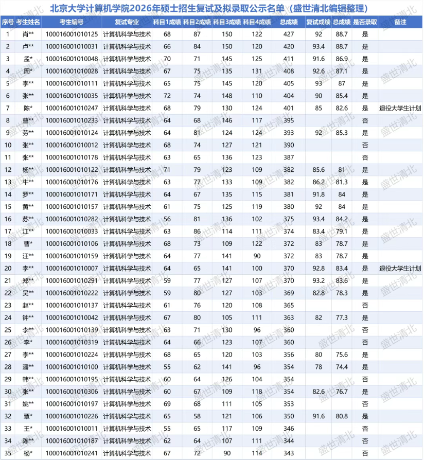 2026年北京大学计算机学院考研复试录取名单简析