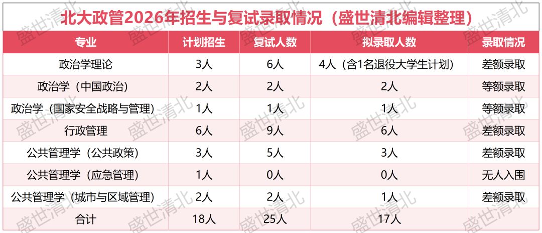 以上分析仅基于北京大学政府管理学院2026年的复试及录取数据,仅供参考。考研形势每年都在变化,招生计划、复试分数线、复录比等均可能发生较大波动。2027考生务必以当年官方发布的最新通知为准,不可盲目套用往年数据。