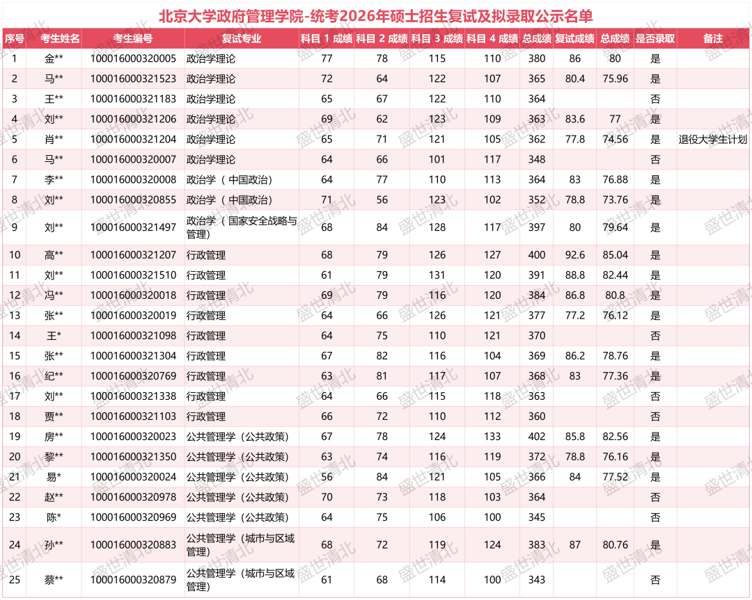 2026年北京大学政府管理学院考研复试录取名单简析