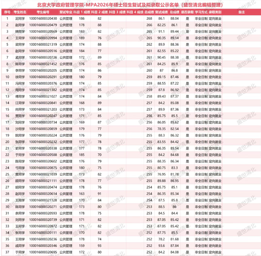 北京大学政府管理学院2026年MPA(公共管理硕士)招生拟录取名单近日公布。在非全日制与全日制的录取中,全日制录取最低分207分、复试占比30%低分考生成功逆袭、全日制少干计划全员上岸等案例引发广泛关注。