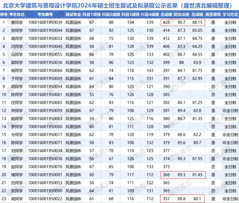 北京大学建筑与景观设计学院2026年硕士招生拟录取名单近日公布。在风景园林专业的激烈竞争中,初试428分高分领跑、357分压线考生复试成功逆袭等案例引发广泛关注。