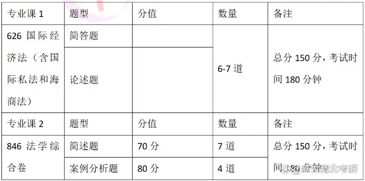 在专业课部分,考试分为两门科目。其中,专业课一(626国际经济法,含国际私法和海商法)的考试形式为6-7道简答与论述题,总分150分,考试时长180分钟。这门课程着重考查学生对专业知识的系统掌握与深度思考能力。