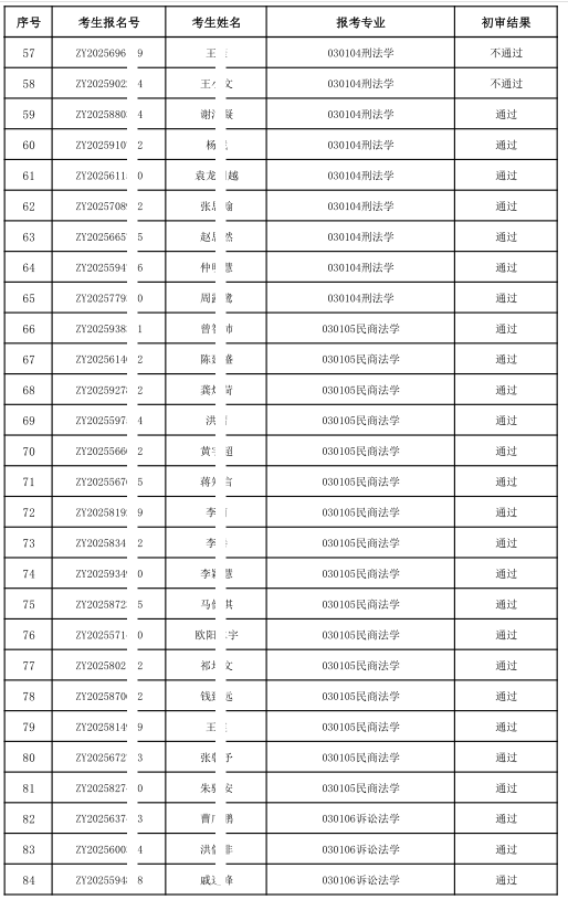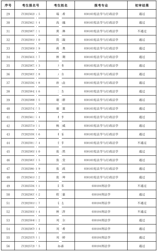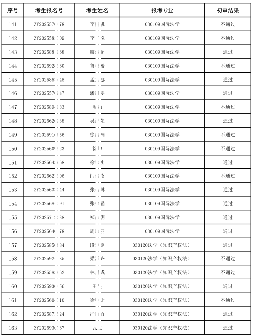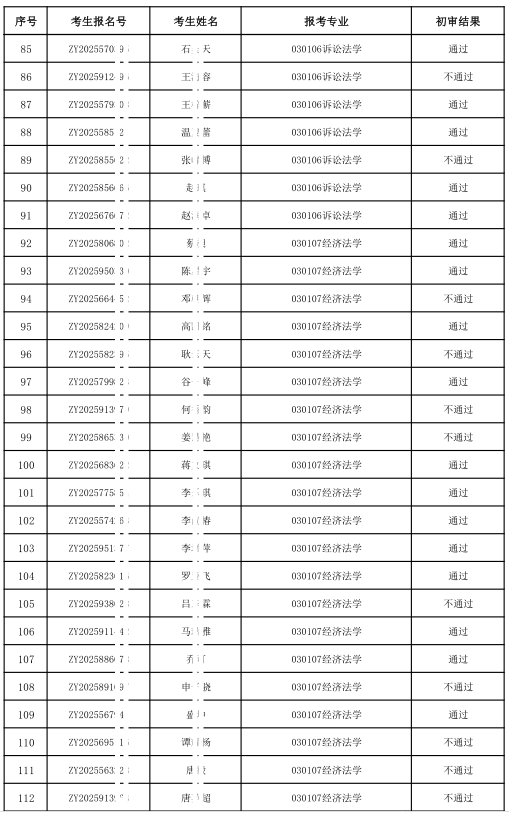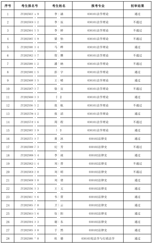 法学院各专业招生专家组根据报名材料对考生情况进行初审,决定进入复试的考生人选。