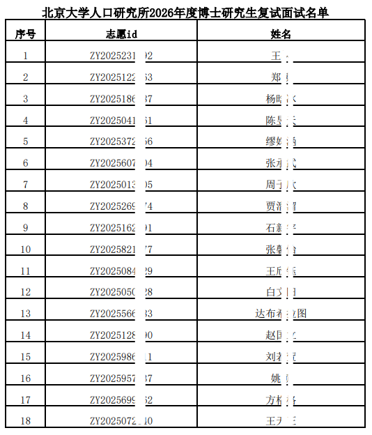 以上是关于【2026年度北京大学人口研究所博士研究生复试面试名单】的内容,希望能帮助准备考研清北的同学们节约时间,提高上岸的成功率。