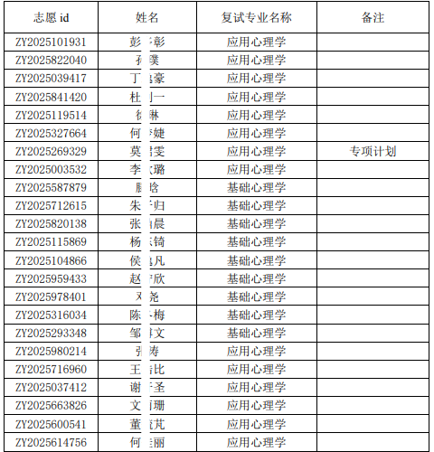 现将心理与认知科学学院的“申请-考核制”博士研究生(含专项计划)复试名单公布如下。
