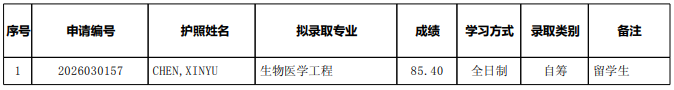 经北京大学研究生院审核批准,北京大学未来技术学院2026年“申请-考核制”留学生攻读博士学位拟录取公示名单见附件,特此公示。
