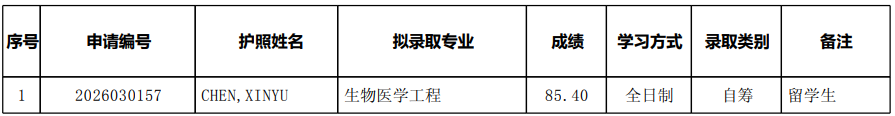 经北京大学研究生院审核批准,北京大学未来技术学院2026年“申请-考核制”留学生攻读博士学位拟录取公示名单,特此公示。