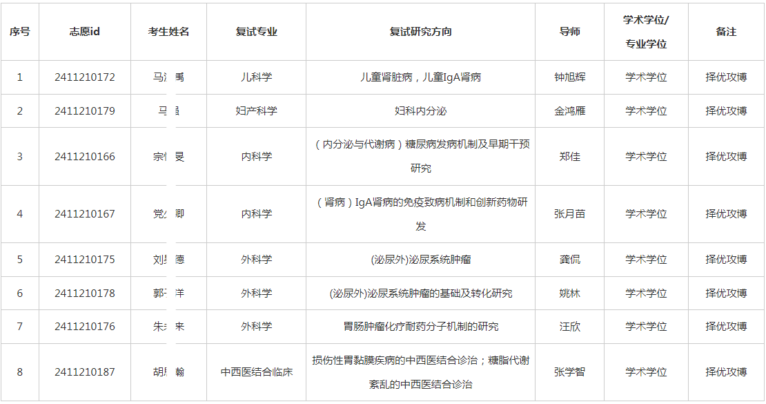 经过北京大学第一临床医学院招生复试工作小组对2026年申请择优攻博学生的材料进行严格审核,同意以下同学进入复试: