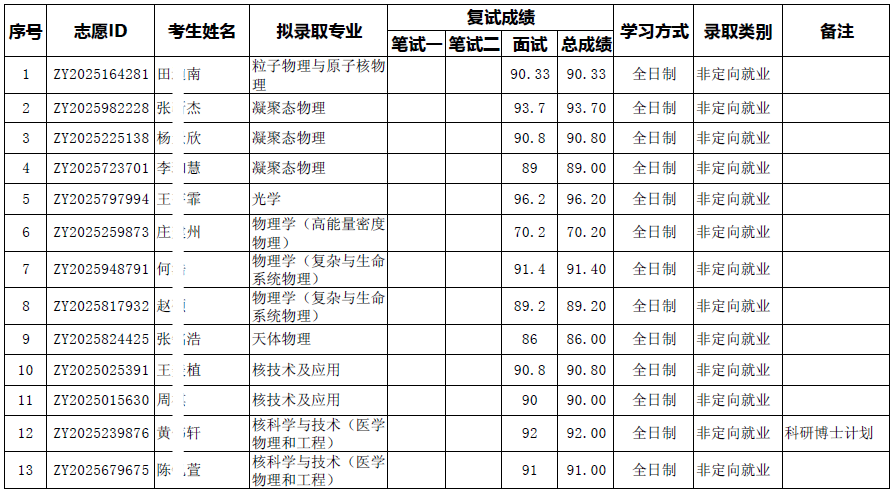 2026年北京大学物理学院博士招生拟录取名单(含港澳台生、留学生)。此名单自即日起公示7日,如有异议,请在公示期内实名提出。