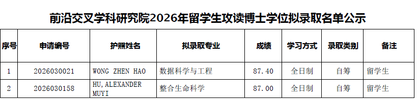 以上是关于【2026年北京大学前沿交叉学科研究院留学生博士研究生招生拟录取名单公示】的内容,希望能帮助准备考研清北的同学们节约时间,提高上岸的成功率。