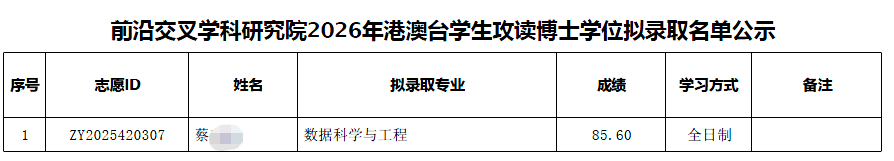 以上是关于【2026年北京大学前沿交叉学科研究院澳台学生攻读博士学位拟录取名单公示】的内容,希望能帮助准备考研清北的同学们节约时间,提高上岸的成功率。
