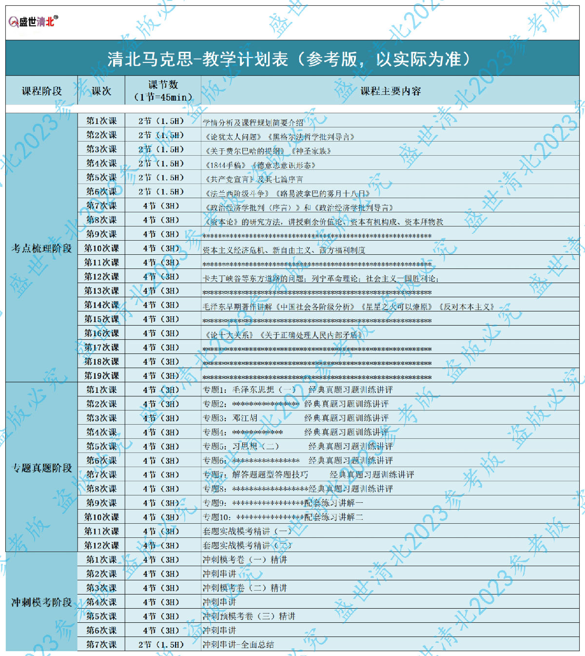 (2)班课教学规划表示例(仅供参考,以实际为准)