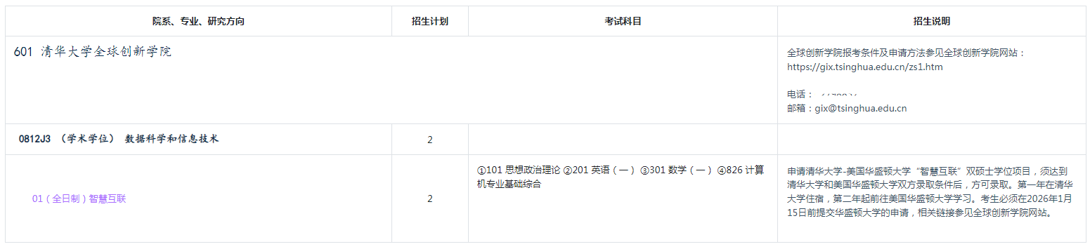 以上是关于【2026年清华大学全球创新学院考研招生专业目录】的内容,希望能帮助准备考研清北的同学们节约时间,提高上岸的成功率。