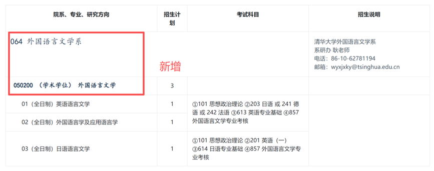 首次以独立招生院系身份开展硕士研究生招生工作,标志着外语学科在清华大学的建设进入新阶段。新增外国语言文学学术学位硕士项目,首年招生计划为3人,为外语专业学子提供了全新的选择。