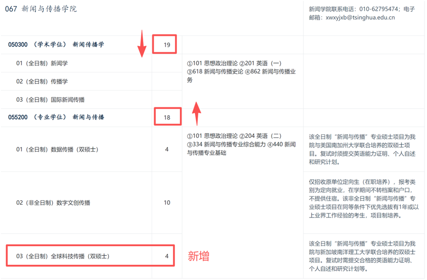 根据最新招生目录,新闻与传播学院主要呈现以下调整: