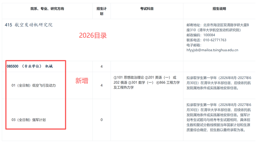 通过对清华大学2026年最新招生目录与往年情况的深度对比分析,盛世清北观察到,航空发动机研究院(航发院)在硕士培养体系上完成了根本性的结构转型,具体变化如下: