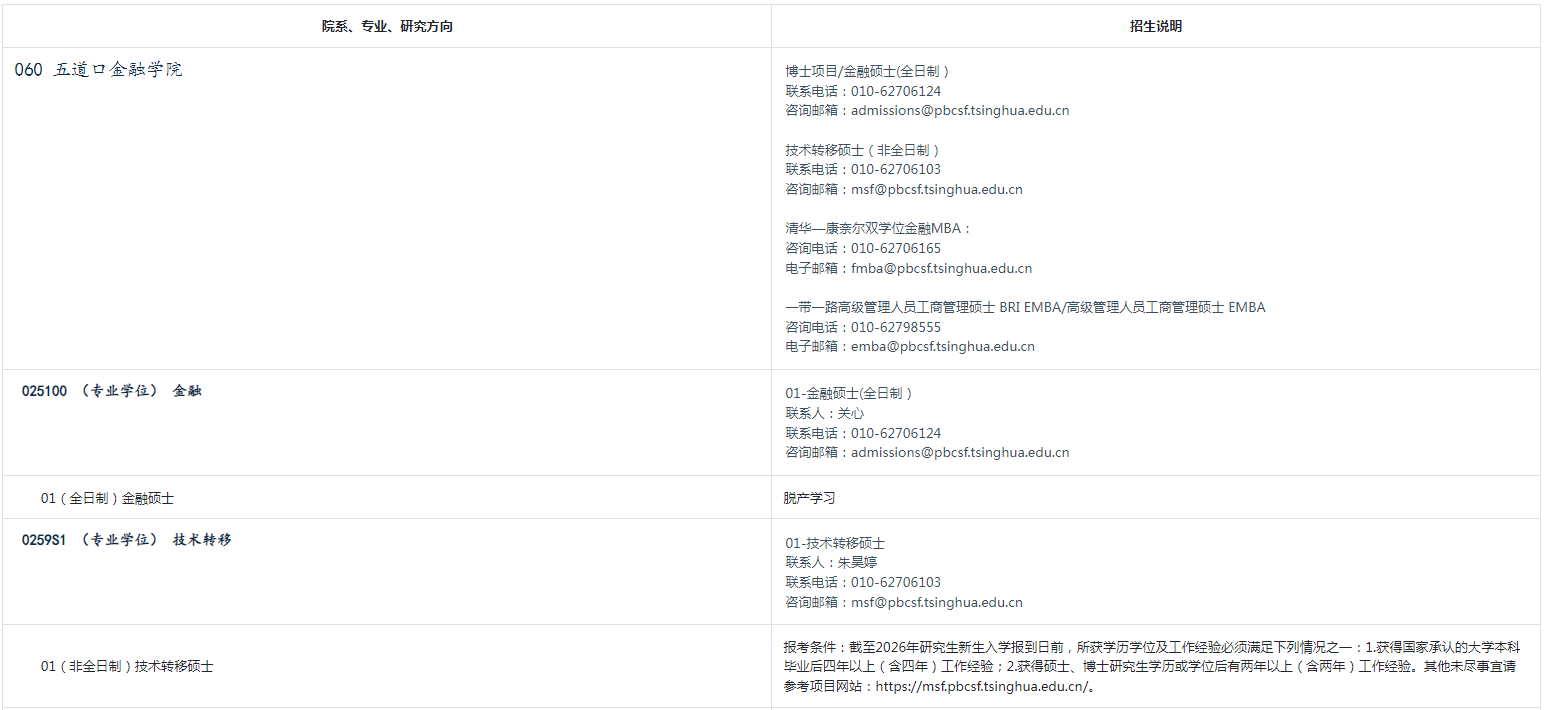 以上是关于【2026年清华大学五道口金融学院招收港澳台地区硕士研究生专业目录】的内容,希望能帮助准备考研清北的同学们节约时间,提高上岸的成功率。