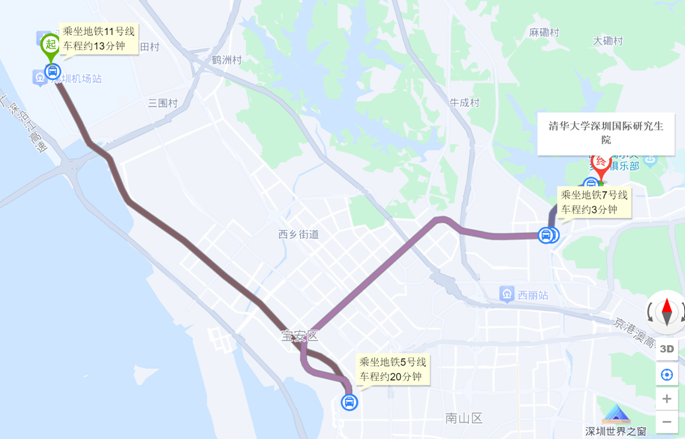 飞机抵达:宝安机场乘地铁11号线(福田方向)至前海湾站,换乘5号线(黄贝岭方向)至大学城站,C口出站步行约10分钟。