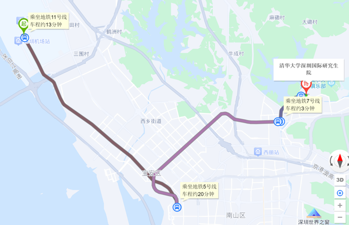 目的地:清华大学深圳国际研究生院,位于深圳市南山区西丽大学城。